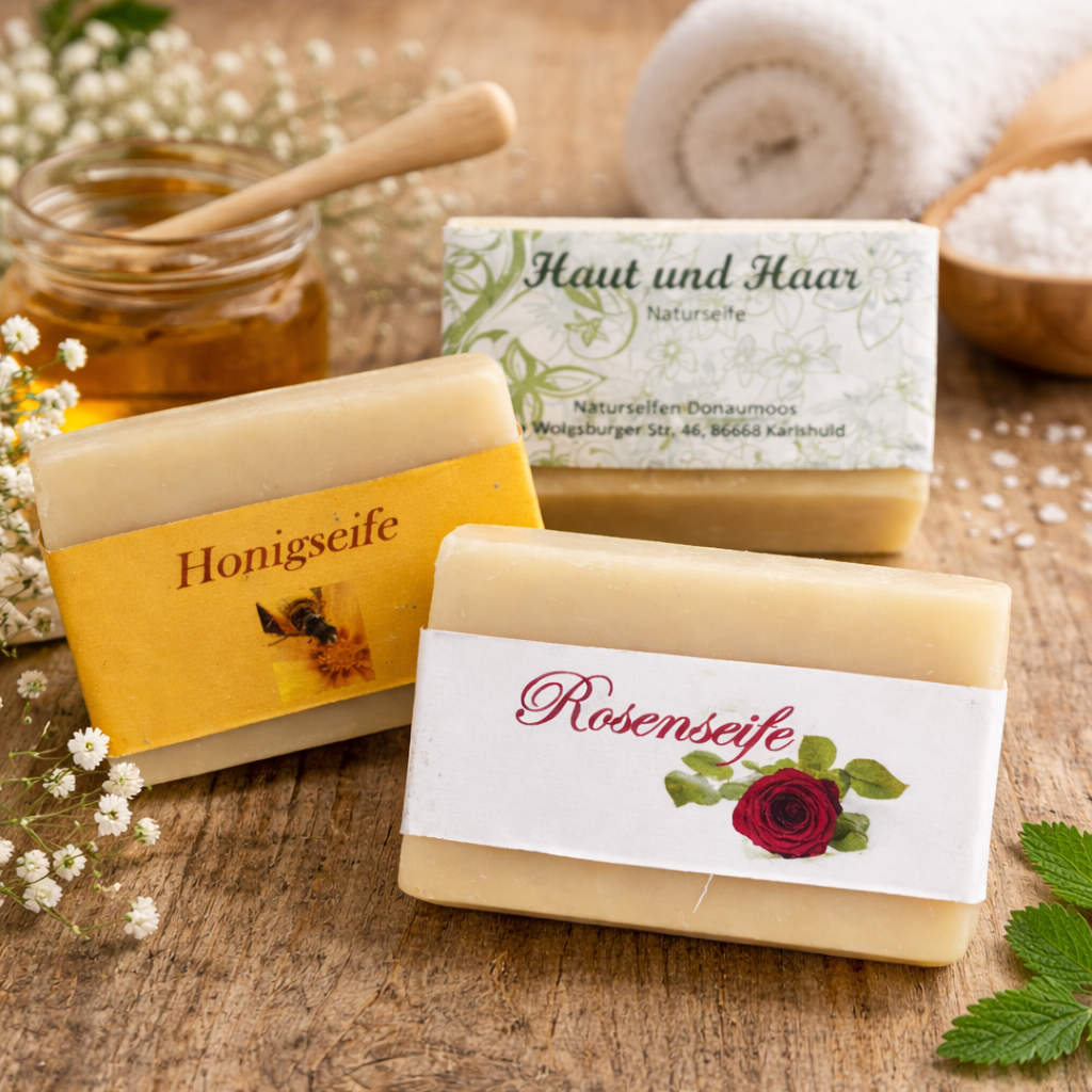 Das Naturseifen 3er-Set bietet eine vielseitige Auswahl handgemachter, regionaler Seifen – mild, pflanzlich, duftend & plastikfrei. Perfekt für nachhaltige Körperpflege oder als hochwertiges Geschenk.